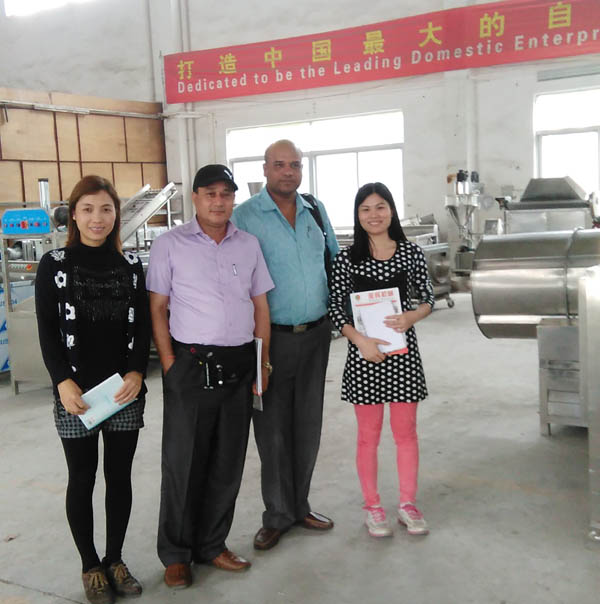 尼泊爾客戶來我公司洽談生姜清洗脫皮生產(chǎn)線,對我公司機器質(zhì)量很滿意,當場訂了一臺QX-818,后續(xù)機器待客戶回到公司溝通完再訂。