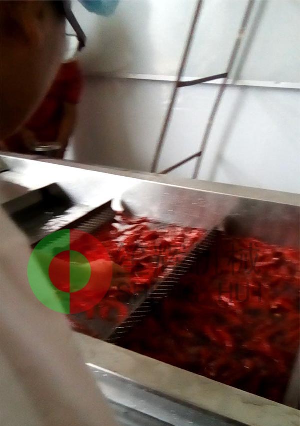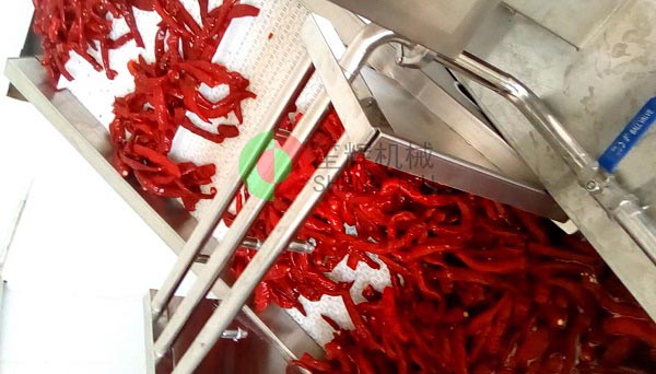 山東德州的YC公司是位于當(dāng)?shù)匾患掖笮屠苯芳庸ぎa(chǎn)業(yè)基地內(nèi),該辣椒城是一個(gè)集辣椒收購、儲(chǔ)存、加工、銷售、科研于一體的綜合性專業(yè)市場,擁有交易區(qū)、倉儲(chǔ)區(qū)、加工區(qū)、服務(wù)區(qū)等多功能區(qū),年成交量7.5億斤,成交額10億元,是山東省辣椒專業(yè)市場,也是江北大的辣椒深加工基地。YC公司在本公司非標(biāo)定制的這條生產(chǎn)線,從辣椒的解凍開始,經(jīng)我們的QX32氣泡洗菜機(jī)切割前清洗,后平面輸送到SH-165大型切菜機(jī)切割成段,然后用皮帶提升機(jī)提升到渦流洗菜機(jī)深度清洗,震動(dòng)瀝水除雜后再次輸送到SH-165大型切菜機(jī)進(jìn)行深度切碎,最后成品!客戶這個(gè)項(xiàng)目的開展,很好地解決了之前人工作業(yè),生產(chǎn)成本高的老大難問題,勢必能在其提高生產(chǎn)能力,節(jié)省生產(chǎn)經(jīng)營成本等方面起到作用。