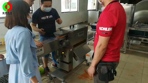 佛山客戶將多年老設(shè)備帶我司維修,并測(cè)試購買紅蘿卜削皮機(jī)!