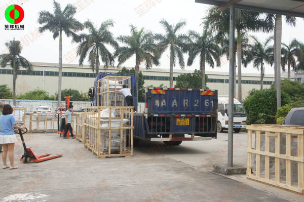 蘇州經(jīng)銷客戶訂制的大批蔬果加工設(shè)備裝車出貨.設(shè)備包括大批洗菜機,切菜機等!