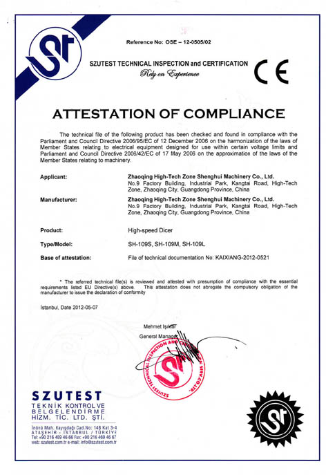 切丁機(jī)器取得CE認(rèn)證