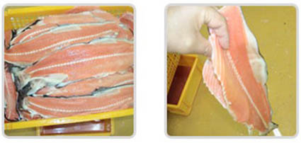 - 產(chǎn)品優(yōu)勢(shì): 片式開魚片機(jī)有中型和大型兩種,本機(jī)采用刀帶切割方式,刀帶沿著魚的脊骨來切割,切成脊骨一片,左右兩側(cè)魚肉各一片,一共三片,對(duì)魚肉和魚骨的損傷較少,大大提高出品率。
