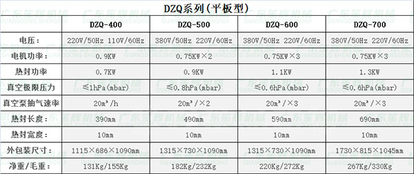雙室真空包裝機(jī)/真空包裝機(jī) 系列參數(shù)表