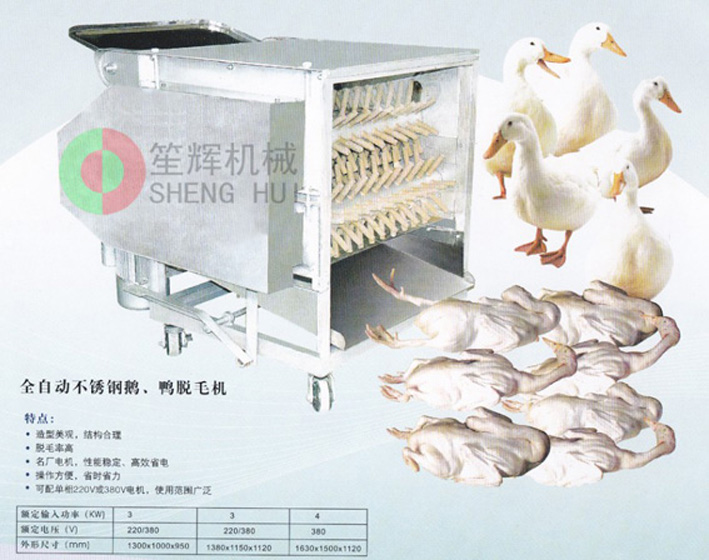 - 產(chǎn)品優(yōu)勢: 大型自動脫毛機,采用不銹鋼制造,耐磨耐用,采用大功率電機,適合于大量的家禽脫毛,產(chǎn)量大,效率高,特別適合鵝鴨的脫毛。結(jié)構(gòu)合理,性能穩(wěn)定,省電,操作簡單,清洗方便,脫毛率高,脫毛效果好,適合大型家禽處理廠,家禽養(yǎng)殖加工場等使用。