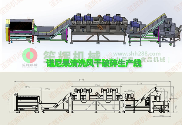 諾麗果毛輥清洗風(fēng)干破碎生產(chǎn)線(視頻)