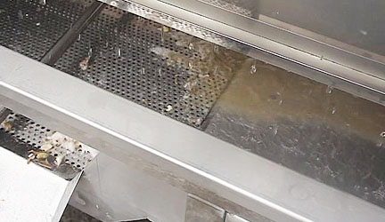 機(jī)器下方的廢料收集區(qū)有足夠的空間方便工人清廢料,而新增濾網(wǎng),可以隔開廢渣和廢水,廢渣在濾網(wǎng)上方輕易刮走,而廢水在濾網(wǎng)下方自動(dòng)排走。