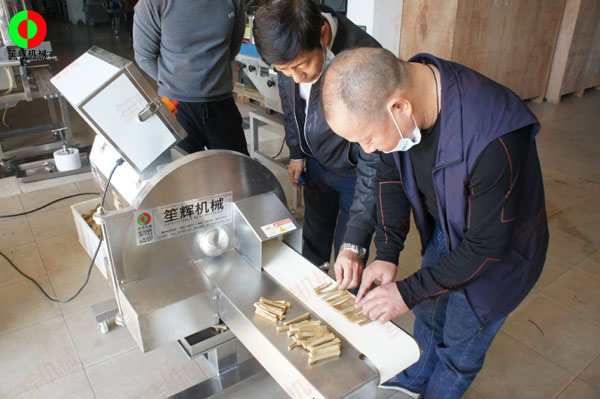 客戶來司現(xiàn)場測試酸筍切條加工設(shè)備!