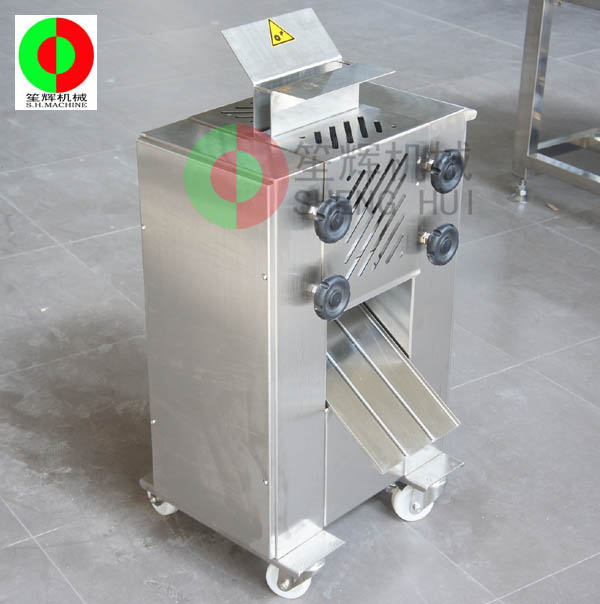 1.通過上層刀組,不銹鋼帶齒壓輪,帶齒設(shè)計,能有效放大肉片尺寸及松肉效果。