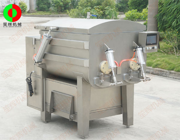 攪拌機(jī)是用于混料的設(shè)備,在真空狀態(tài)下物料攪拌均勻、充分膨脹、無氣泡、彈性好、色澤鮮艷并大限度的提取了蛋白質(zhì),混料效率高,是改善產(chǎn)品品質(zhì)的理想設(shè)備。適應(yīng)大、中、小型食品加工廠,是制作風(fēng)干腸類產(chǎn)品、粒狀、泥狀混合腸類產(chǎn)品、丸類產(chǎn)品。