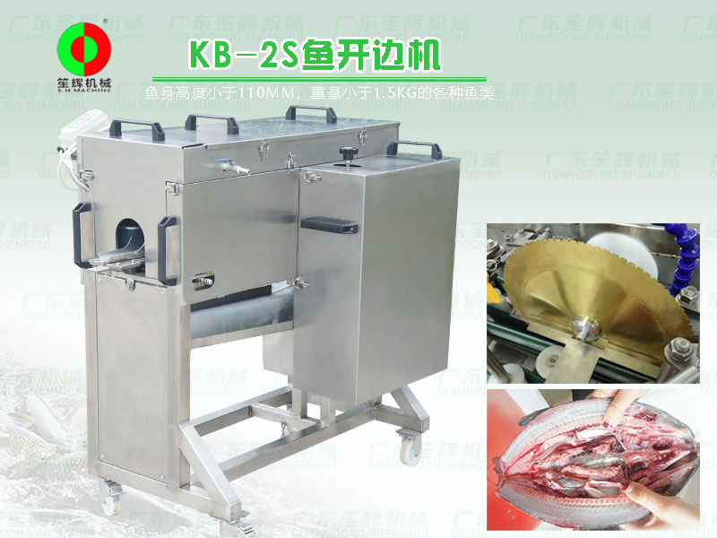 本公司KB-2S可將魚(yú)類(lèi)正開(kāi)或背開(kāi)成兩邊,開(kāi)邊深淺度可調(diào)??商幚眙~(yú)身高度小于110MM,重量小于1.5KG的各種魚(yú)類(lèi),如草魚(yú)、鯽魚(yú)、羅非等等。設(shè)備開(kāi)邊速度快、效果好,不傷魚(yú)類(lèi)內(nèi)臟,它適用于大型水產(chǎn)加工配送中心、魚(yú)產(chǎn)品加工賣(mài)場(chǎng)等使用。