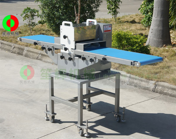 產(chǎn)品特點:機身采用優(yōu)好304食品*級材料,食品安*全有何障;工作效率高,一次可切斷50條(7mm標(biāo)準(zhǔn)生肉包括脆骨)刀片鋒利,經(jīng)特?zé)崽幚?,速度快,切割能力強耐用;整機防水,可直接用水沖洗;刀組拆卸方便,可在3分鐘內(nèi)更換不同規(guī)格的刀組,滿足不同寬度食材的切割要求;穩(wěn)定性好,機器運行平穩(wěn),噪音低,故障率低,能滿足客戶多樣性需求。兩臺連接成小型流水線,實現(xiàn)切塊功能。